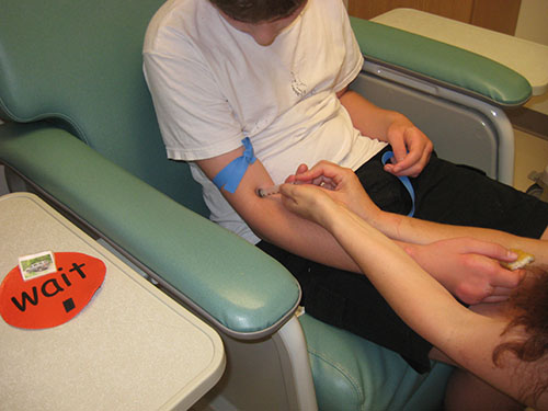 Isaac does a good job of waiting for his reinforcer while a nurse draws blood.